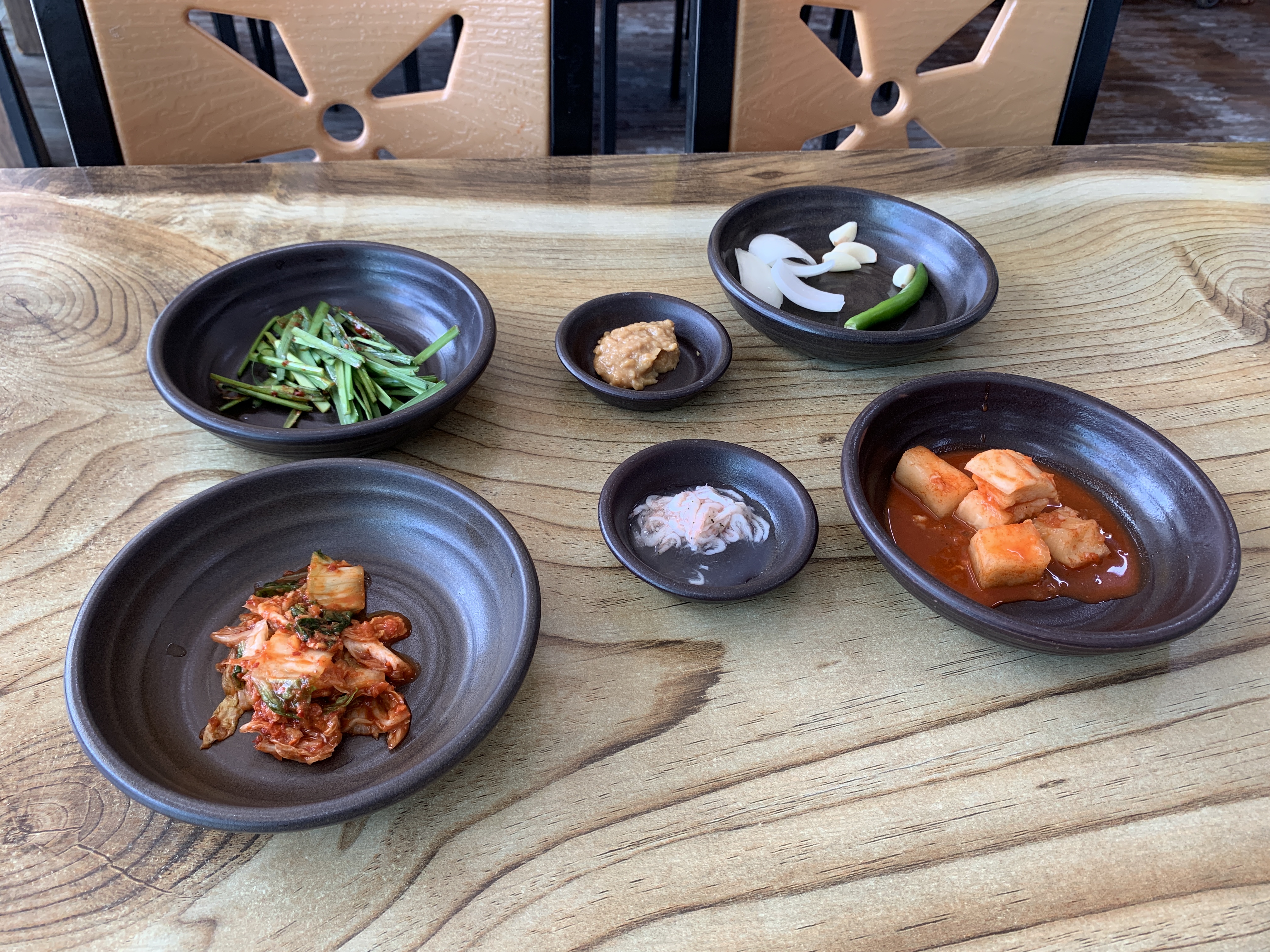 밑반찬들입니다. 저는 저렇게 부추가 나오면 국밥에 다 넣어 먹습니다.
